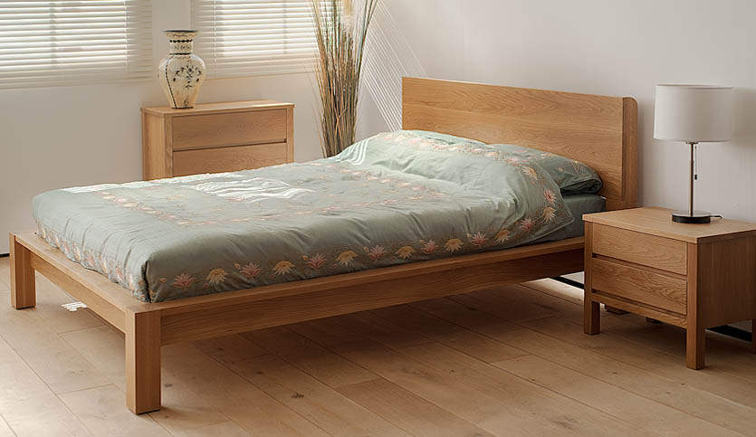 An exotic Zebrano timber is paired with Maple as shown in the first image above. And a strip of Walnut contrasting with Oak has proved popular in the past. As all our beds are made to order we can combine any of the hardwood timbers we stock. Just get in touch and we will provide you with a price. Another customisable option for the Tibet bed is to add a footboard (see the last image above). To receive a quote for a bed with a footboard, please get in touch with us.