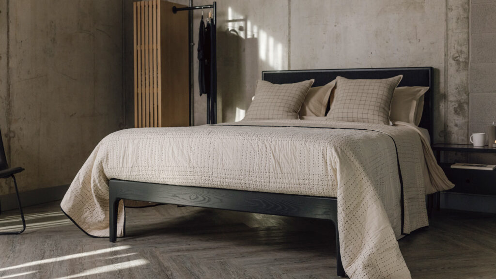 This look is inspired by a 1950’s vision of the future. Influenced by the Eames’s furniture and textiles as updated by Orla Kiely. The colours are bright but with softer, slightly muddier element – olive, mustard and teal. This look was present last year and will continue with deeper, richer colours. Walnut and cherry work well with this look, walnut can look great with warm tones (olive, coral or burnt orange) while cooler tones make a great contrast to cherry wood (teal, inky indigo or silver grey). Strong shapes suit this look; try the Cochin or Zanskar beds. Complement these beds with Ethiopia duvet sets in blue or grey, the Bronte multi-colour spot throw will add some colour and fun!