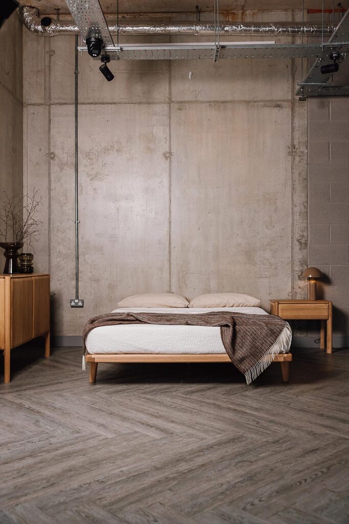 A classic solid wood bed or simple metal frame can be accessorised with bedding, throws and cushions in a way that can radically change the look (and be updated inexpensively as trends move on.)
