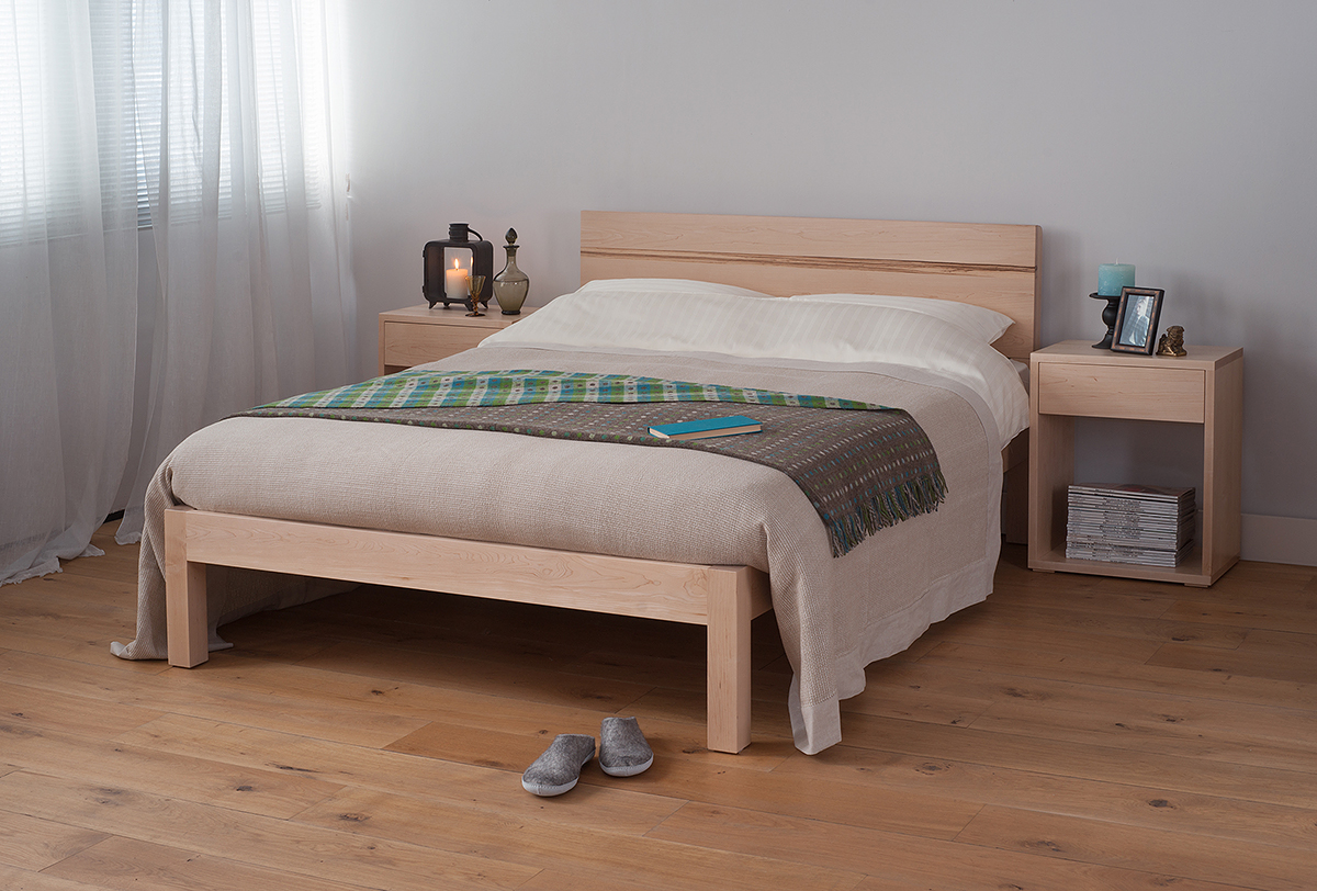 An ideal bed if you wish to show as much of your hardwood timber choice as possible. The large headboard allows for the differentiations in grain and subtle changes in tone to be seen on a grand scale. Timbers such as walnut and cherry are perfect choices here. Both feature bold grain patterns and swirling changes in colour; creating a striking focal point in the room.