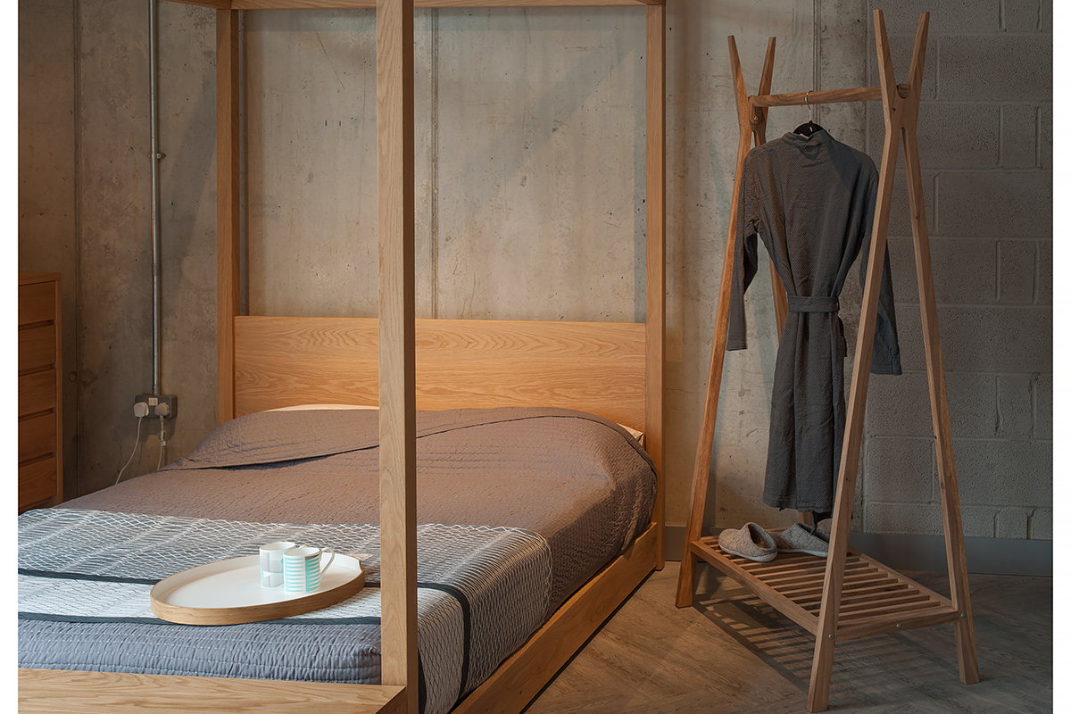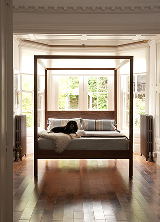 The Cube bed is our most recent four poster design and our most modern in style. This is a bold, statement bed that looks its best in a large bedroom or loft space. With such a strong bed design I would keep bedding and accessories simple. The Cube or Kyoto bedside tables look great with this bed as they follow the Cube Four Poster’s clean lines. Modern lighting, a wood or concrete floor and simple painted plaster walls complete the style.