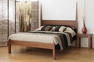 The Oasis is a four poster with a twist. The tall headboard posts are connected to each other, and the lower footboard posts are connected. However, unlike the Cube and Orchid beds, the head and foot posts aren’t connected with upper side bars. This gives a modern, ‘open’ look to the bed. It also means that this bed looks appropriate in smaller bedrooms.