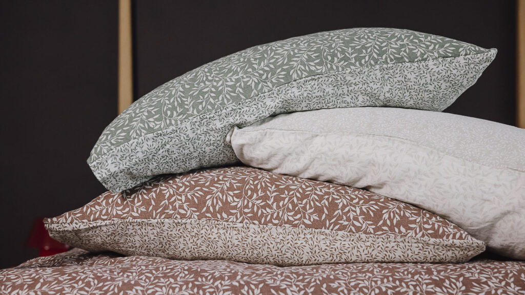 A move you can see a softer, more feminine take – the muted palette in dusty shades of warm ivory, cream and pale peach suit the solid oak bedroom furniture. A light canopy, running from back to front, evokes a sense of romance and summer holidays. This is a bright, but cosy look – here we’ve used embroidered silk bedding and simple accessories for a summer look. For winter try white cotton bedding, with a comfy quilt and warm wool throw.