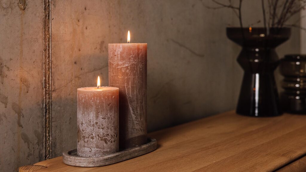 If you are lucky enough to have room for a large bedside table, you can create a wonderful festive look by adding a simple lantern and scented candle to your table top. Our melt scented candles in Noel, Forest and Verbena & Clary Sage are perfect scents for Autumn Winter. Or, add a Noctua scented candle in Oud & Saffron or Fig. Both are wonderful Christmas scents. The pretty glass, owl shaped candle holder takes up little room and can be used to store tea-lights when the candle has been used up.