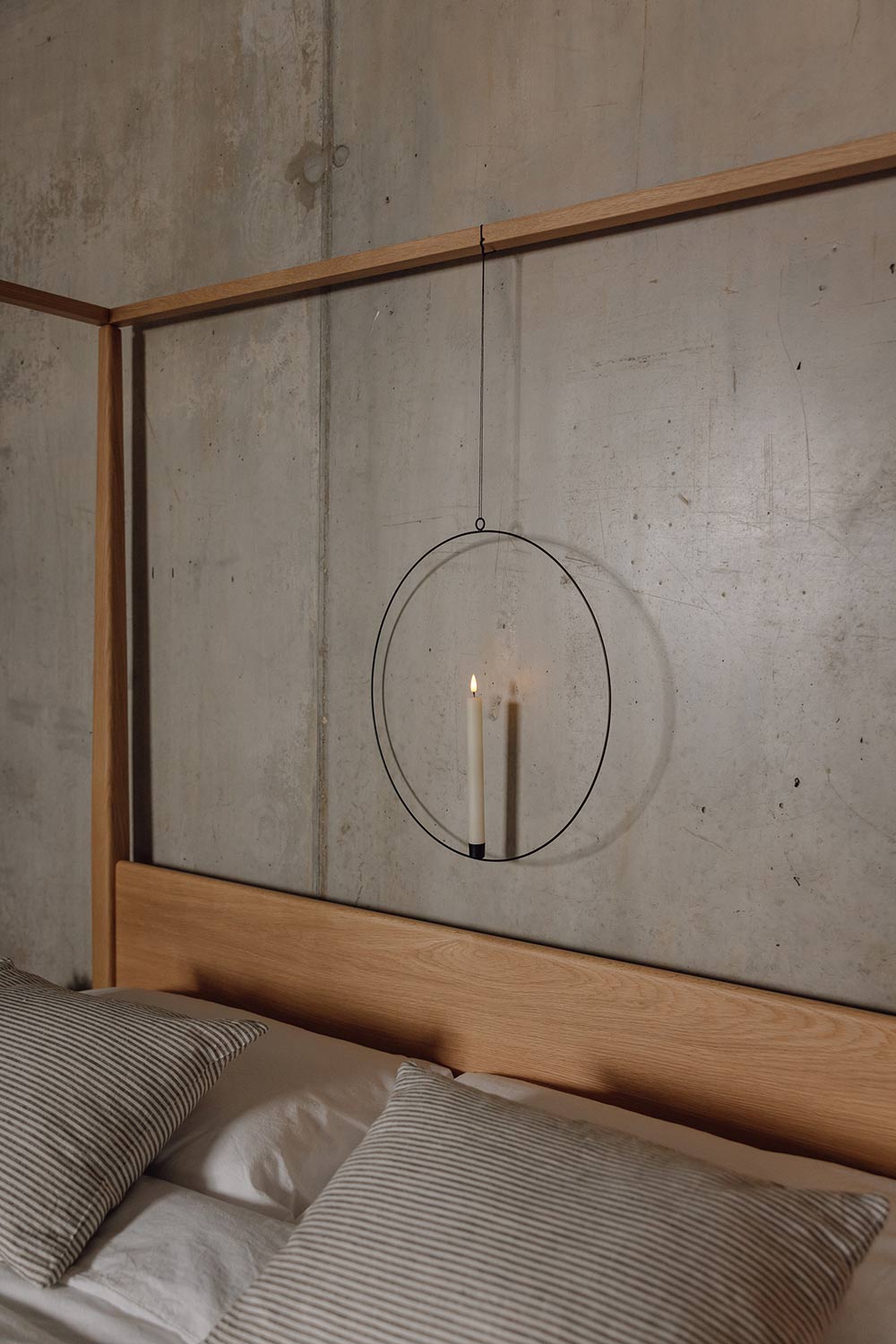 A current, popular look for bedrooms is inspired by Nordic style. A cosy interior look, this style makes use of natural materials such as solid wood bed frames, chunky knitted throws and cushions. You could also consider adding a faux fur blanket or cow hide rug. It’s best to start with a neutral colour palette can be warmed up at Christmas. Add a splash of red or orange in the form of a red-striped duvet set or blanket. A vase of twigs with red berries and holly would also work perfectly.