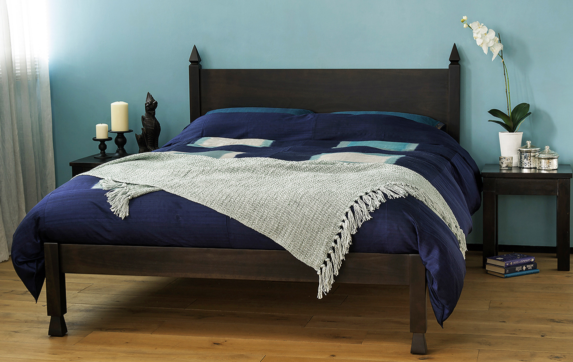 The Mandalay is a lower version of the Samarkand bed, shown above in solid oak with a cosy, quilted bedspread and modern bedside table. This bed is perfect for a subtle, relaxed take on this style – less formal and opulent than the previous India inspired bedrooms – the Mandalay in a light wood gives a fresh, subtly modern feel.