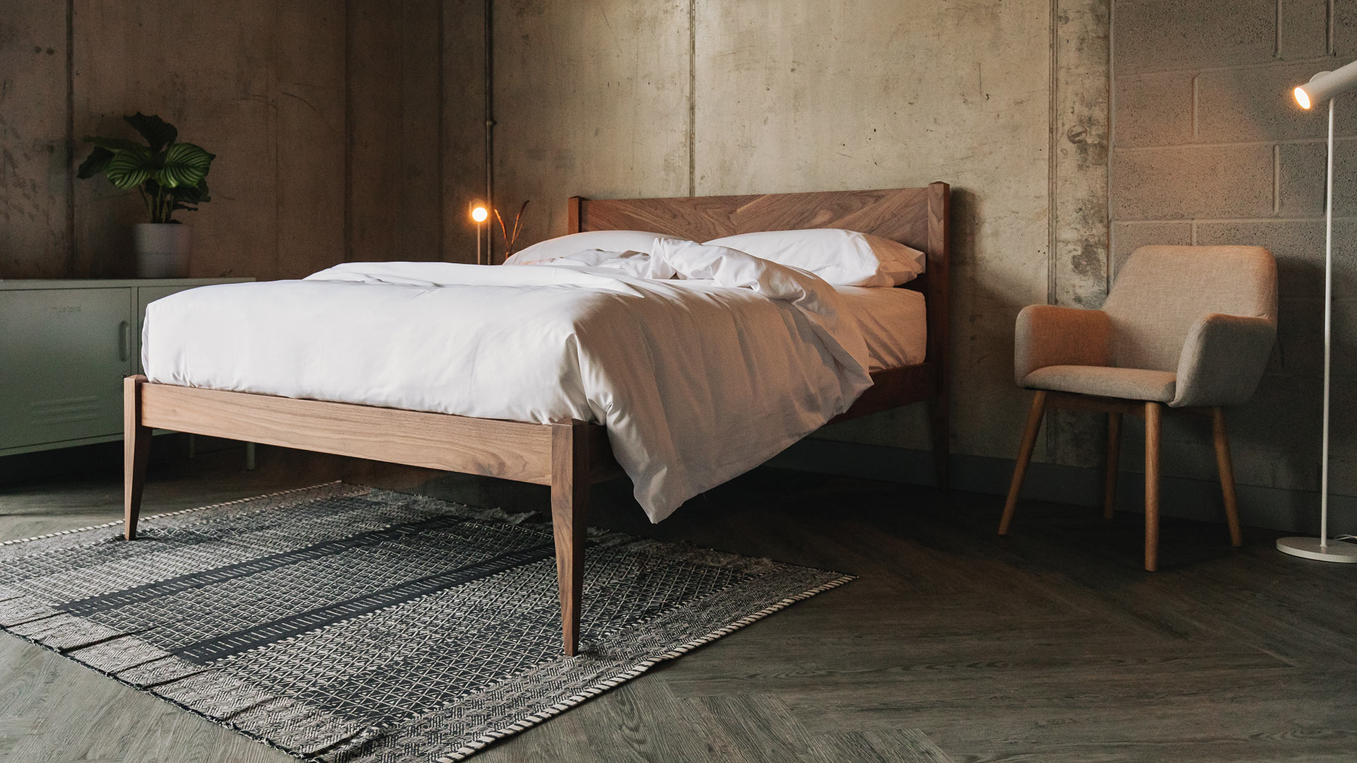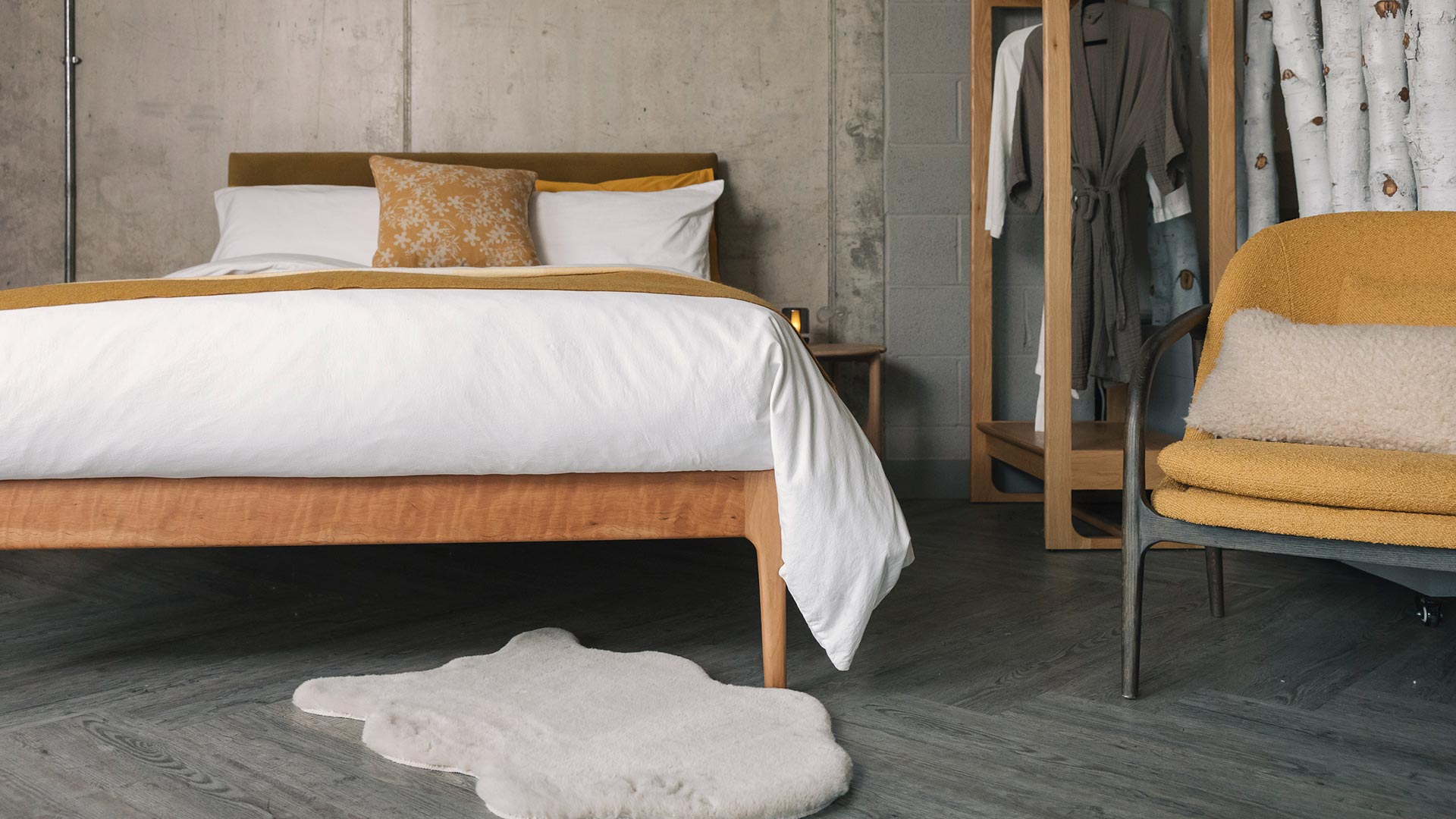 A fresh white bedroom is a great choice for making the most of those sunny, summer days. It is also a good back-drop for contemporary, Scandinavian furniture and accessories. If you like an all-white look and want a white bed – we make a wide range of solid woods beds, that can have an opaque white finish. We suggest opting for beech if you want to order the bed with a solid lacquer finish. This is due to beech’s very subtle grain. You may even want to choose an MDF panel for the headboard to keep the finish as ‘flat’ as possible.