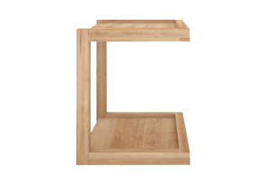The Damien table has a slender, square section, solid oak frame with a removable ‘tray’ top. The top is either circular or square, and is available in natural oak, black or white with an oak edge. The handy tray is a clever aspect to the design – useful for carrying your morning coffee cups back to the kitchen. The cut-out section to the tray rim can act to keep your cables tidy if you charge your phone or ipod next to your bed. The height of the Damien side table is 45cm – perfect with our mid height or taller beds including the Oasis or Orchid Four Poster beds.