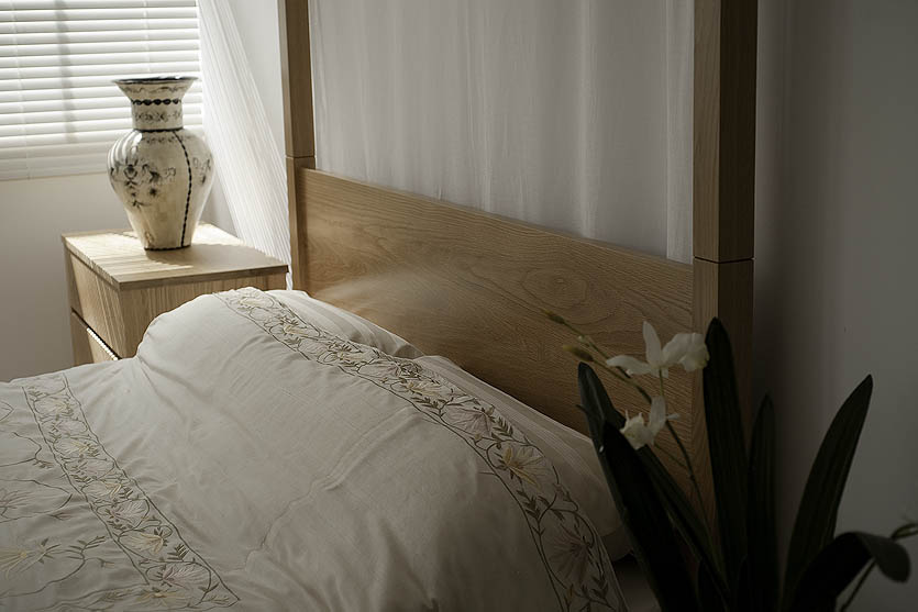 The Oasis is a modern take on a classic canopy bed – it is without upper rails joining the footboard and the headboard. This design detail gives the Oasis its light, ‘open’ style. It also allows the headboard frame to be taller than the footboard – resulting in a simple, clean and contemporary design with an interesting ‘stepped’ appearance.
