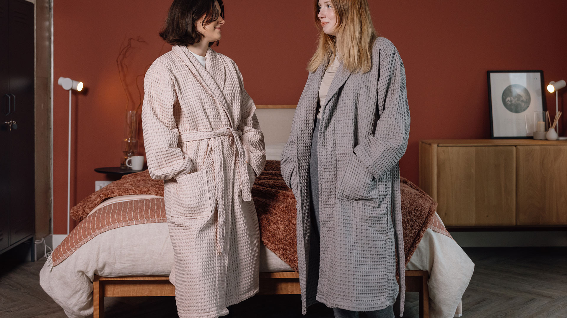 Pyjamas, Dresses & RobesWho doesn’t love to receive pyjamas, robes and loungewear?! Pamper your partner with a pair of luxurious linen pyjamas, or a soft linen lounge dress and robe. We have a range of soft, heavy-weight linen nightwear in a range of colours. Take a look at our Linen kimono robes in white, blue or black, and our lounge dresses (in white or black) – stylish enough to be used as day-wear yet soft and cosy enough to make luxurious nightwear. We also have linen pyjamas and linen bath-robes in white, dove grey or soft pink.
