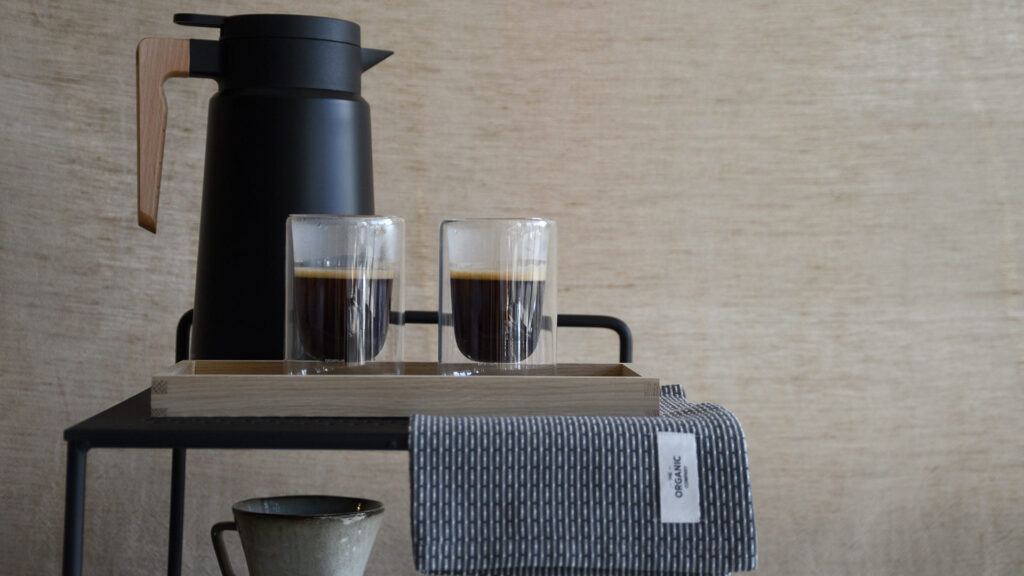 Stelton have been busy this year and have also launched a stunning range of Nordic coffee making utensils. We have the stove-top espresso make in Teflon coated stainless steel with a solid oak handle, and a beautiful coffee bean grinder in stainless steel in a black and gold finish. Complete the set with the modern sugar bowl and lid – also in black.