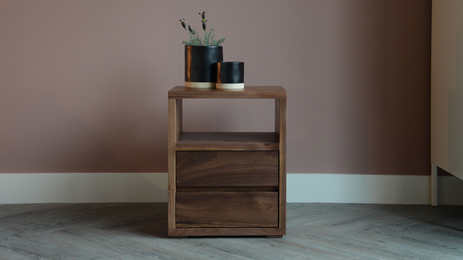 The Cube range made in solid walnut is a slightly smaller range than the oak Cube collection, but still includes our most popular designs: the small 2-drawer bedside, 3-drawer chest, 5-drawer chest, low 1-drawer unit and the open storage cube. Black Lotus ‘Cube’ is a modern bedroom furniture collection, perfect for contemporary interiors.