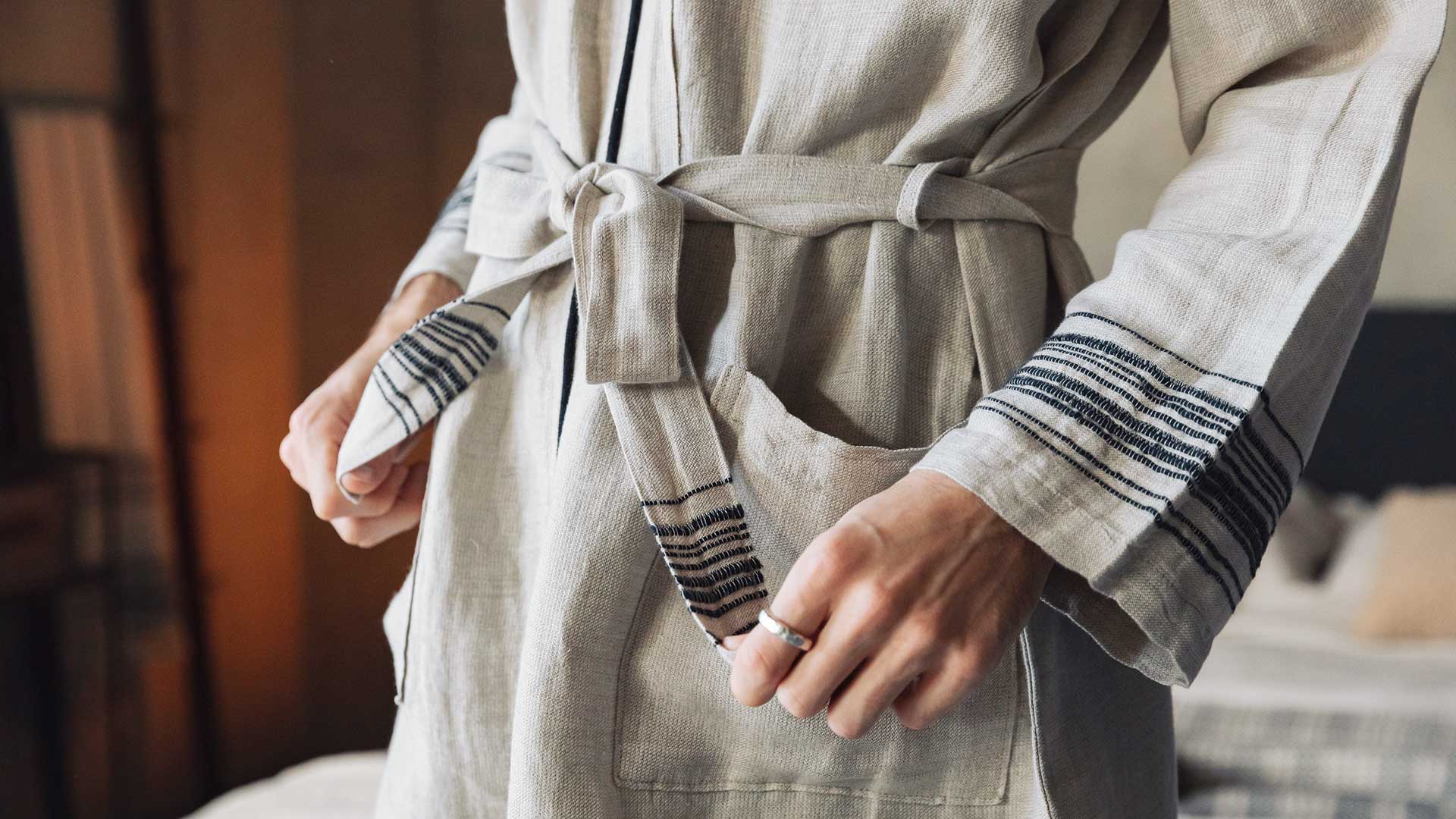 If you think your gift recipient would prefer something cosier take a look at our soft pyjamas in a heavier weight cotton and our heavy-weight linen robes available in four colours. Our soft waffle robes in white or slate grey are also a good choice, the fabric is heavy enough to keep you warm but drapes beautifully. Looking for a lovely stocking-filler? Try our sleep socks in blue or beige.