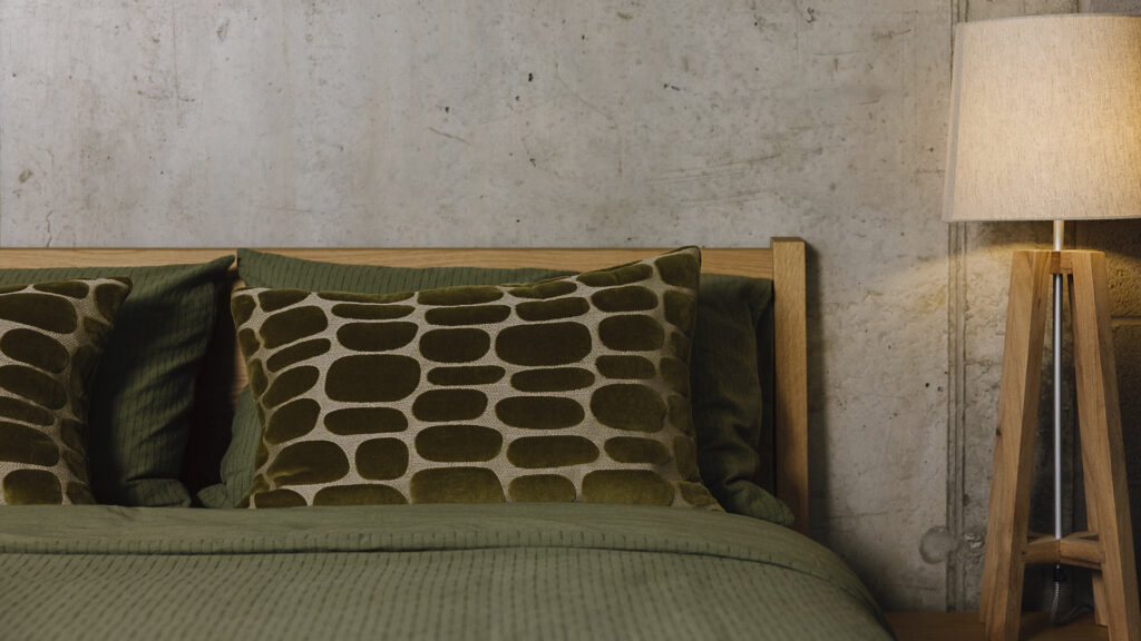 We have a range of products to fit the bill. My current favourites? I am very tempted by the new Persia rug – it’s silky and luxurious with a vintage ‘distressed’ pattern woven into the pile. I also think the new Army Green bedspread with an amazing geometric pattern stitched into the fabric would fit the bill. This green is also a rich and warm shade of green – perfect for interiors. The new Highland four-poster, which incorporates a solid wood frame and an upholstered headboard in a range of fabric options, is another good choice – select a vibrant wood grain and bold fabric for maximum impact.