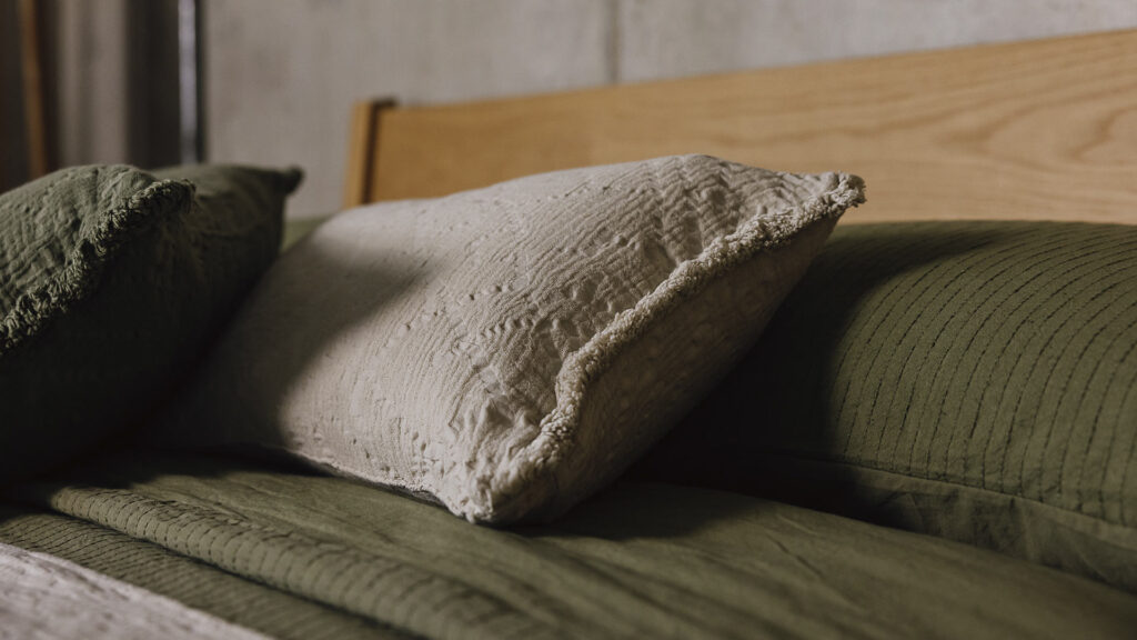Continue the ‘Organic Layers’ theme by layering natural bedding in cotton, linen and wool. Our organic cotton bedding with a fine sateen finish, when paired with a quilted velvet and linen bedspread makes for a luxurious look. Alternatively try pure linen bedding and a woven wool throw or faux fur blanket for added texture.