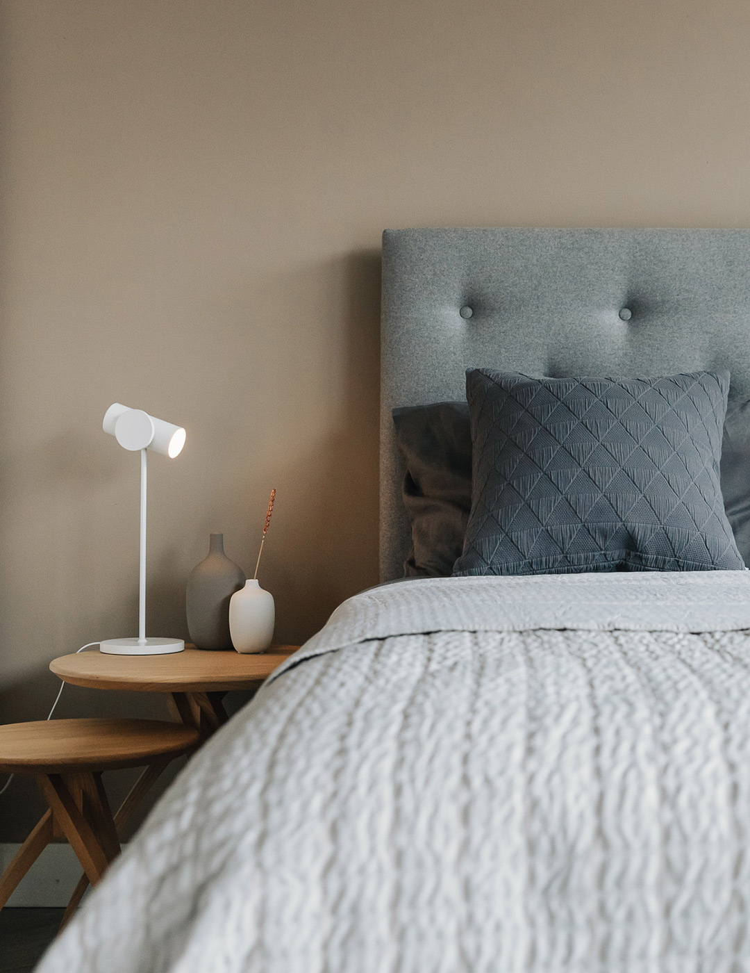 We often use grey fabrics for our range of upholstered beds as there is a shade of grey to suit every timber – just take a look at the images of Arran, Skye and Shetland beds above. Downpipe Grey (a Farrow & Ball colour) is also one of the most popular colours for our painted headboard beds – you can see it on the Koo above.