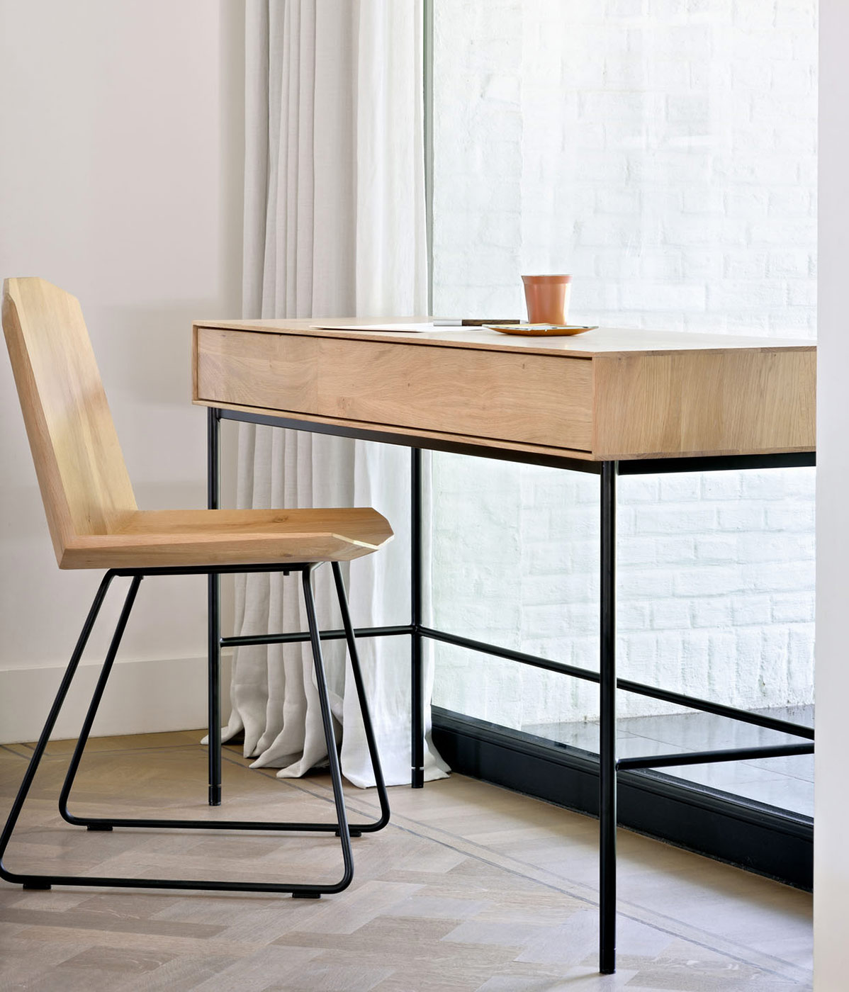 We have lots of new bedside tables available. Ethnicraft have introduced the BlackBird and WhiteBird tables – single drawer units on elegant black metal frames. Their Spindle bedside unit is another lovely new design – the table top is in clear glass, while the wooden table has a lower drawer with a single central hole to allow for easy opening. The Spindle is available in oak or walnut.