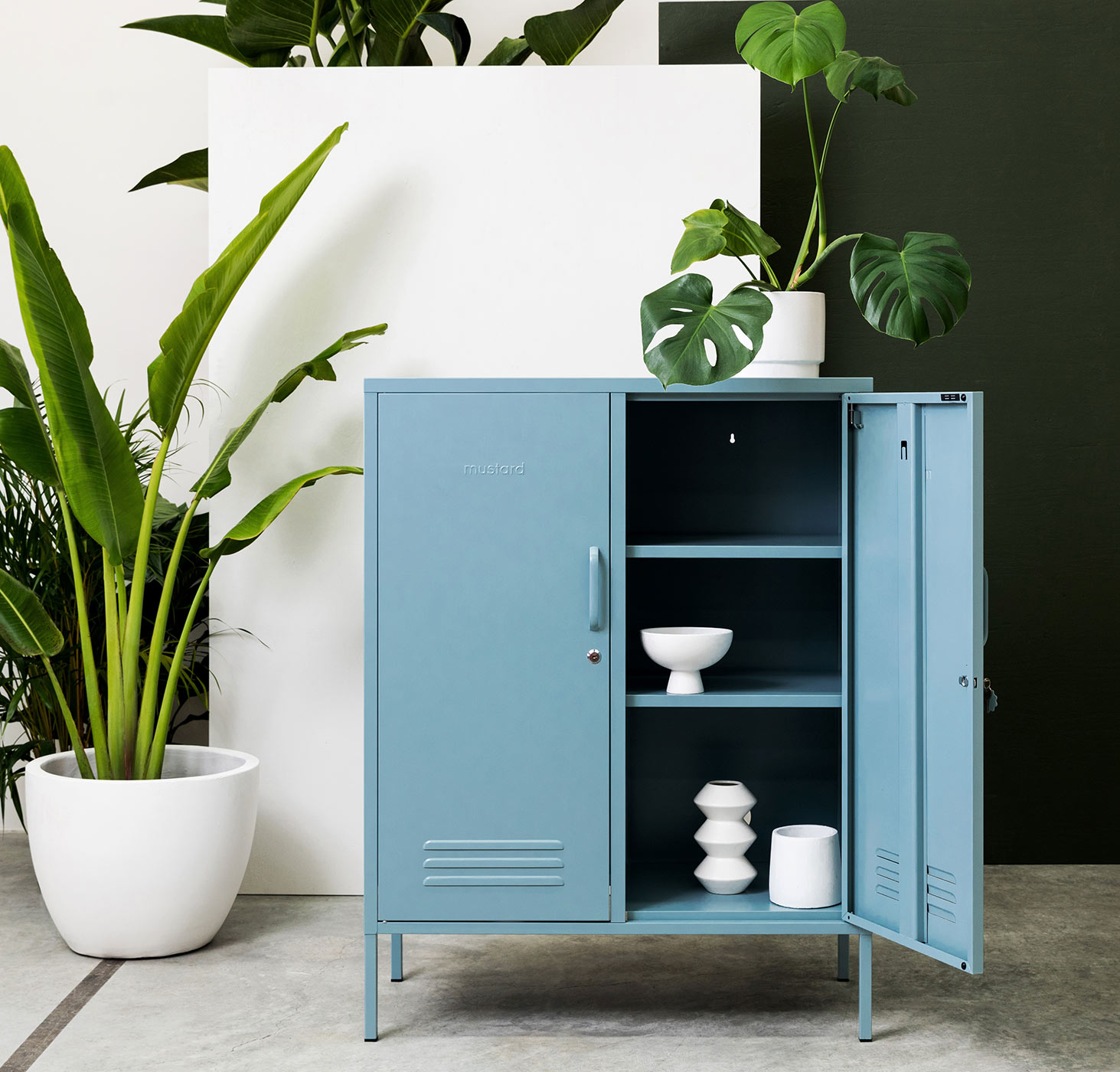 If you want a more classic look we’ve added a new 3-drawer bedside unit to our Shaker range in oak and walnut. This handy chest offers lots of storage space in a small footprint. If you are prepared to move away from solid wood we also have a new metal lockers range which is great fun and affordable. The collection includes bedside units, tall ‘wardrobe’ lockers, a low sideboard and a ‘midi’ cupboard. They come in a wide range of stylish colours: pale blush pink, white, slate grey, mustard yellow, olive green or navy blue, rose pink and mid ocean blue. They are a great way of adding a pop of colour to a more natural, wooden furniture scheme.