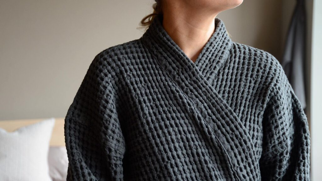 Alternatively take a look at our collection of organic cotton wrap towels. They are light-weight, yet absorbent – perfect for packing for holidays. These towels are available in three sizes and two shades: light grey or dark grey. The hand-hair towel is 40x120cm – they can be wrapped around the head and held in position by tucking one end into the band. The middle size 60x155cm, these soft and absorbent cotton towels are perfect for use at home, in the spa or even on the beach! They are generous in size and wrap beautifully around the body due to the clever design and light-weight absorbent fabric. The large wellness wrap size is 109x163cm – large enough to lie on at the beach and to wrap around your whole body when drying.