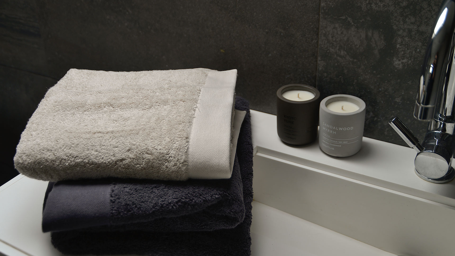 If you’re traveling, or looking for a towel to take to the gym, the travel towel is a great choice. These stylish travel towels are made of 100% organic cotton in dark anthracite grey or a warm taupe ‘clay’ colour. They have a soft terry finish to one side and smart woven finish to the reverse. These towels can be rolled and secured using a fixed loop, keeping them tidy and compact.
