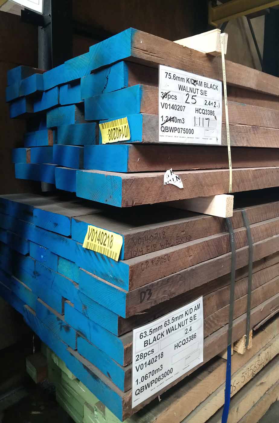Our solid hardwood timbers were barely recognisable in their rough sawn state, the hardwood timbers with more pronounced, heavier grains stood out from the racks – such as walnut, maple and ash. Our softwood timber option – Pine, was easily noticeable with its characteristic knots and grain.