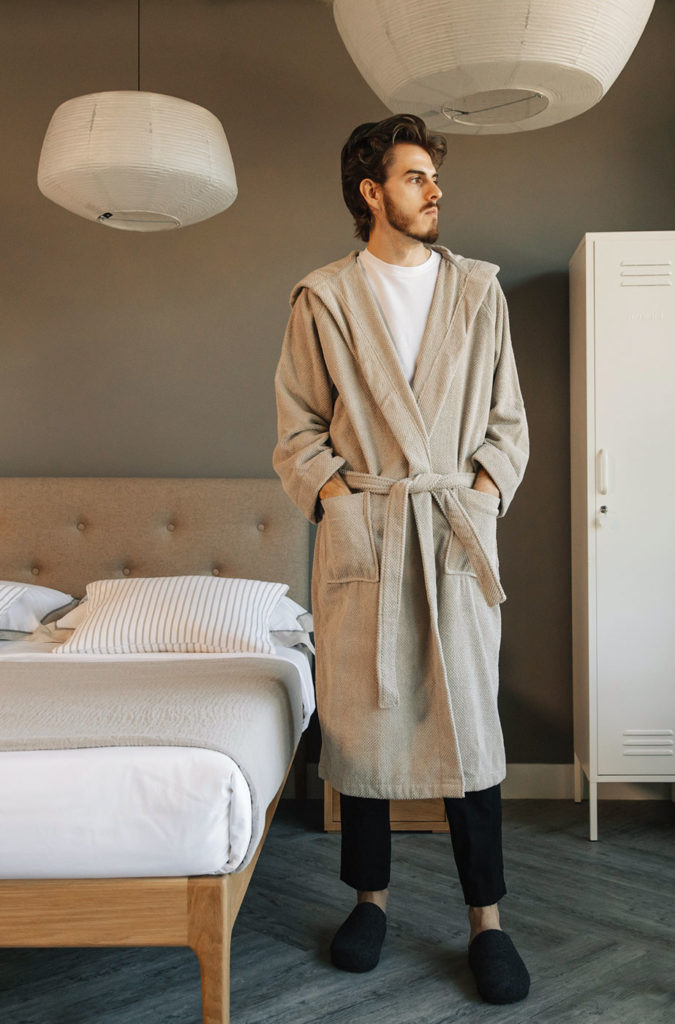 If you’re looking for further footwear ideas – the Isak Men’s Wool slippers provide a great alternative to the Glerups and they have a rubber sole – handy if you may occasionally want to wear them outdoors! Available in sizes 9, 10 and 11 in both charcoal and pale grey. For extra warmth and cosiness take a look at the Hugo sheepskin slippers.Keeping with the cosy theme – take look at our robes ideal for men – the Linen Rich robes, Men’s Cotton Towelling Robe or Herringbone Cosy Robe.
