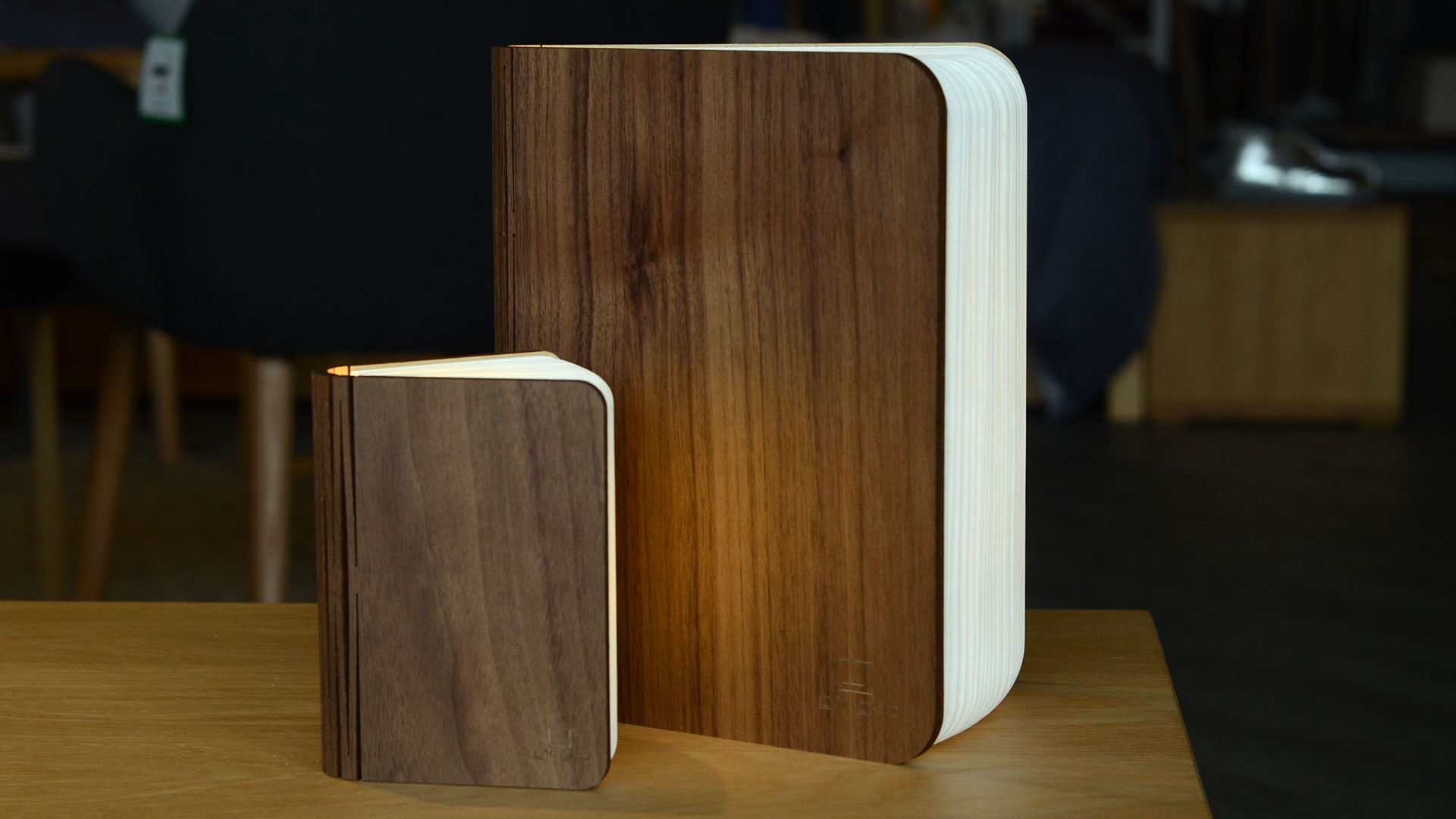 Also new in for this year is a personal favourite of mine – the Book Light – a lamp concealed inside a laser-cut walnut book cover. With the magnets on each side you can either open the book fully, giving you 360 degree illumination or use them to attach it to a metal surface.