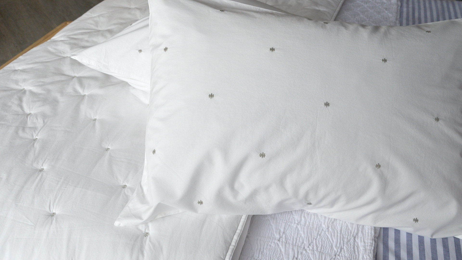 The new Quilted Bedspreads with matching pillowcases in Marine Blue or White add a thick extra layer on top of your duvet. Alternatively, they can be used on their own when the weather does eventually heat up! They also include an embroidered detailing to create a soft and sumptuous quilted effect.