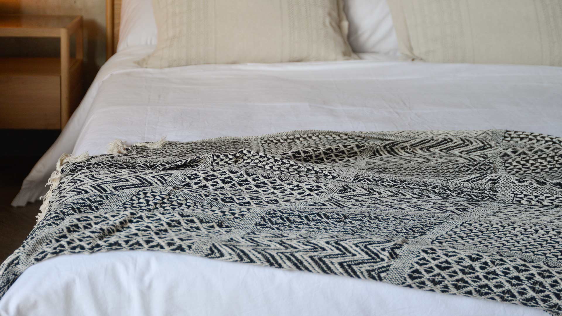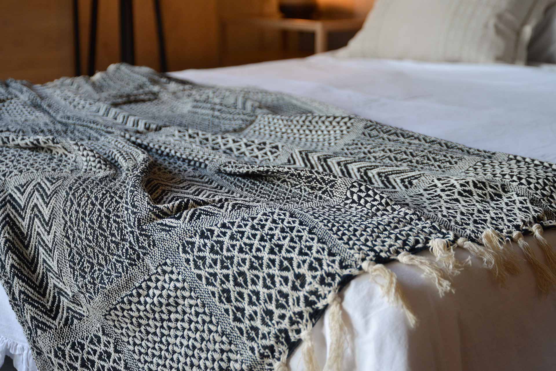 Hit that Boho trend with the Cotton Black and Cream Throw which displays a patchwork, woven look with fringed edges. A great way to add extra interest and style to your bed or sofa