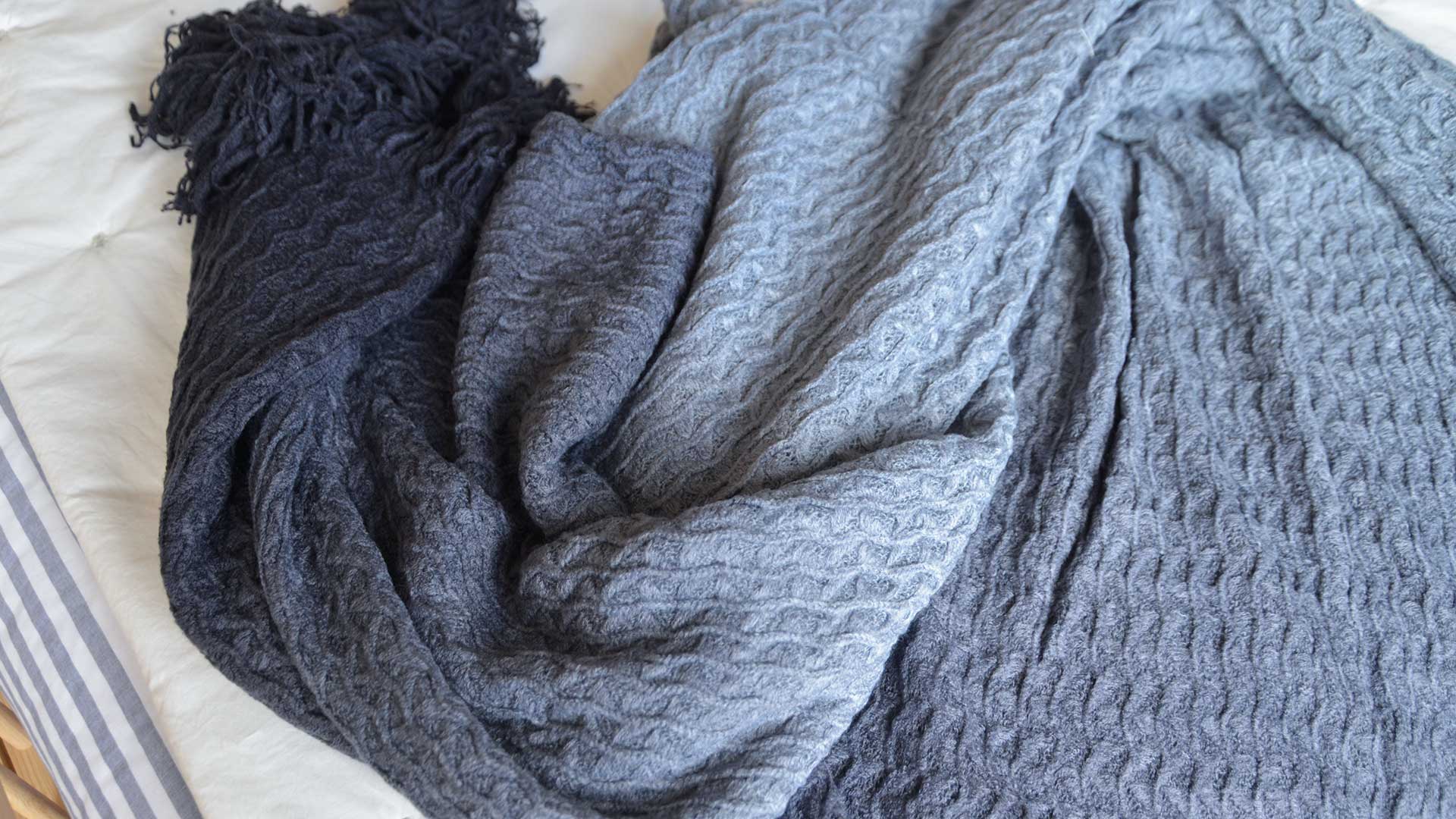 For a bit of added texture, we have the Textured Loose Knit Throws, available in Blue Ombre, Grey Ombre or Turmeric so there is an option to suit anyone’s space! Like wrapping yourself up in your favourite cosy jumper