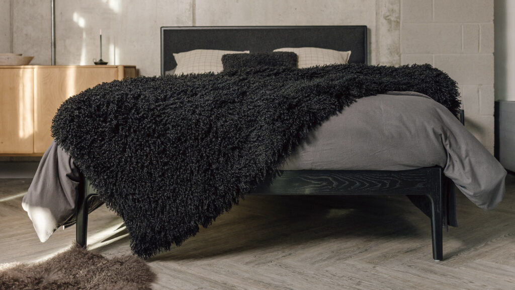For a purist take on the Black and White theme, a favourite is the Black on Oak effect, see the Black Malabar or Black Kulu beds, or for more of a statement check out the Black Oak Orchid four poster bed. If a black bed is too intense for you, we can also finish any of our beds in a White Painted effect on Beech. This is an opaque finish, so you won’t see as much of the grain of the timber. If you still want to see the grain, but with a cool, pale look – try a whitewash finish on maple wood.
