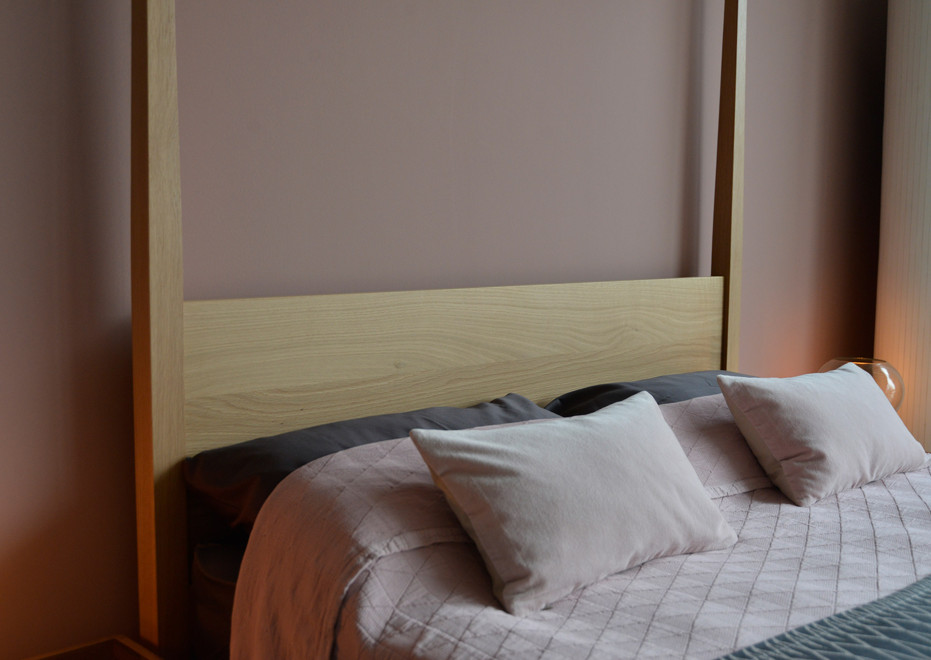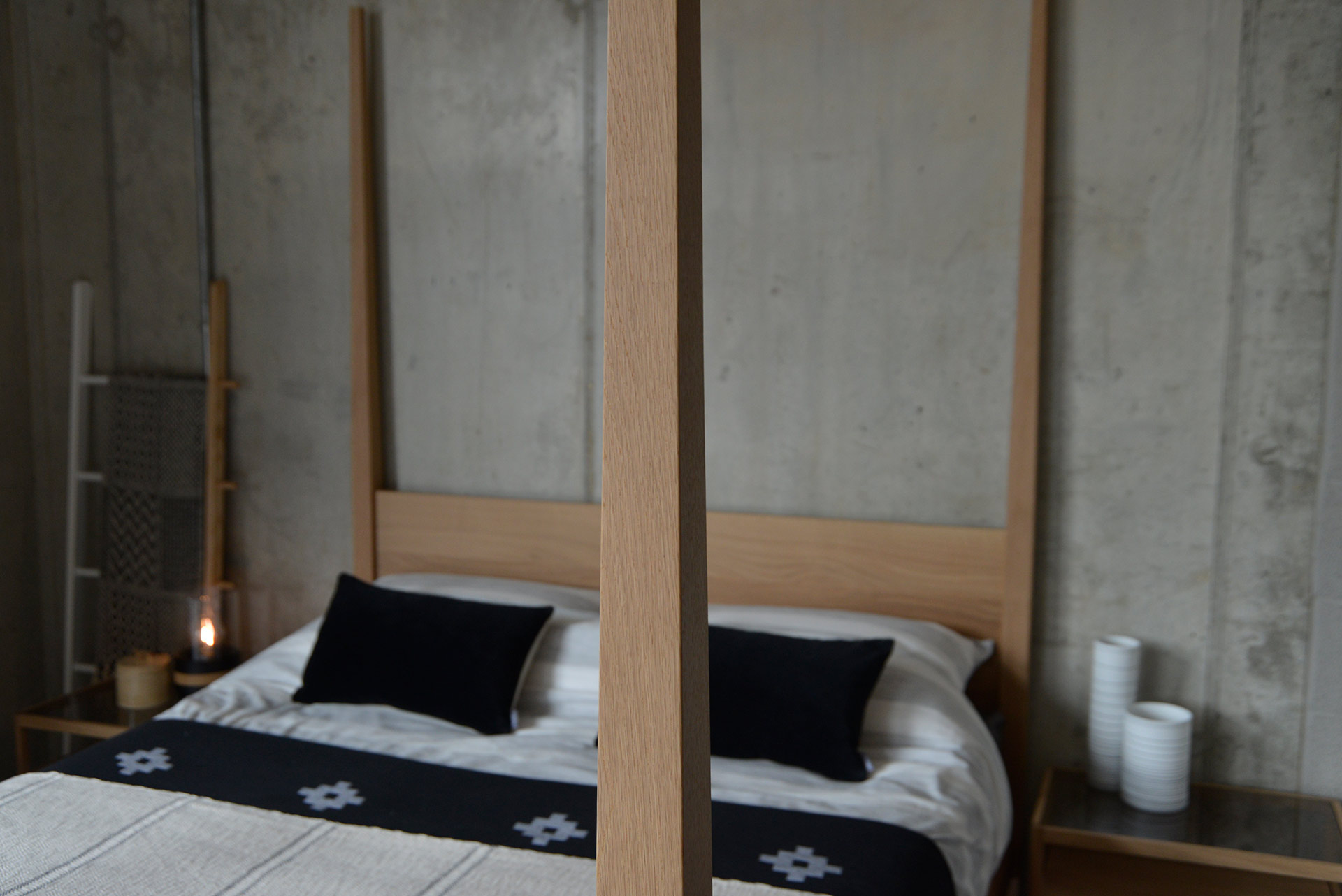The Hatfield four poster suits a range if different bedroom looks and bedding styles. We’ve dressed the bed in a blend of pink and grey for a modern, feminine look while the modern monochrome bedding and oak and white bedroom furniture shows the bed in a contemporary, Scandinavian inspired interior. The Hatfield would be at home in a range of spaces.