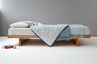 For a simple Japanese style bed we would recommend keeping to neutrals (ivory, grey or taupe) or a bold black or brilliant white. Like the Kulu the Koo is available with the attached side tables, however if you prefer a separate bedside table – take a look at the Frame side table which can slot over the bed base.