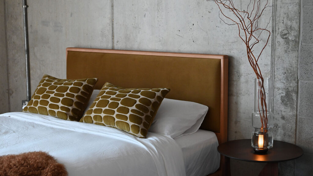 We love cherry wood for its smooth grain and warm reddish-brown colour, which deepens beautifully over time. It creates a cosy, welcoming feel that’s perfect for a bedroom.