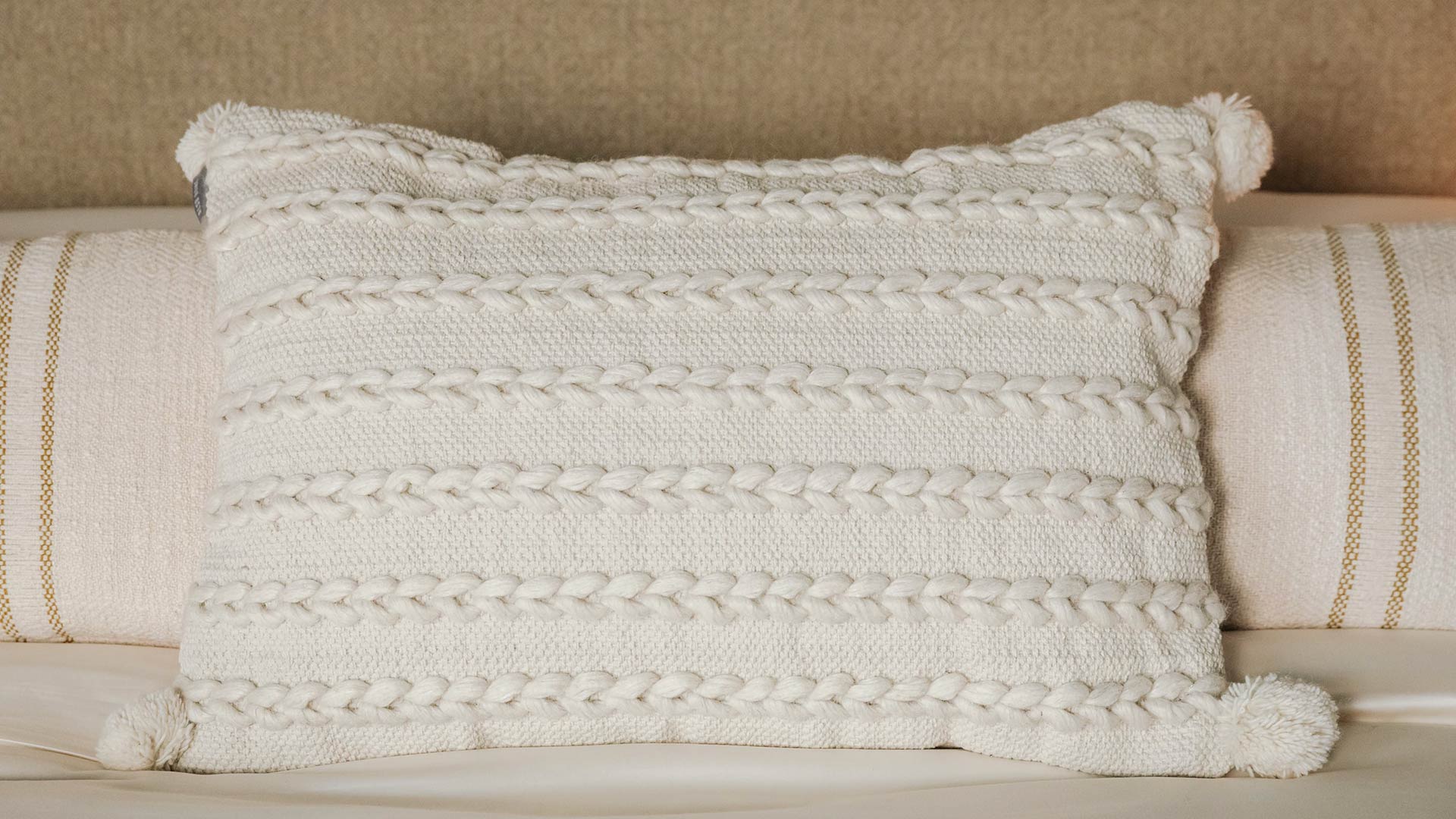 This look isn’t just for winter though. Layering chunky knitted or woven wool throws over rumpled linen bedding will look sophistcated and inviting in a spring/autumn bedroom too. Add embroidered, knitted or tassled cushions to complete the look.