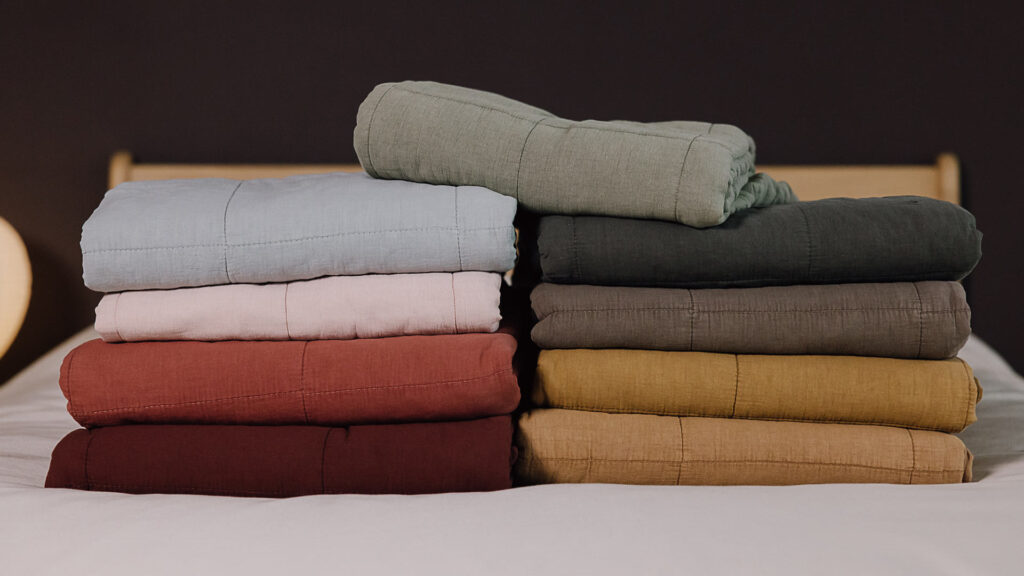 Below you can see a range of our many colourful throws, blankets, quilts and bedspreads. Popular colours for this year are turmeric yellow, burnt orange, dark teal and greens in olive and lime.