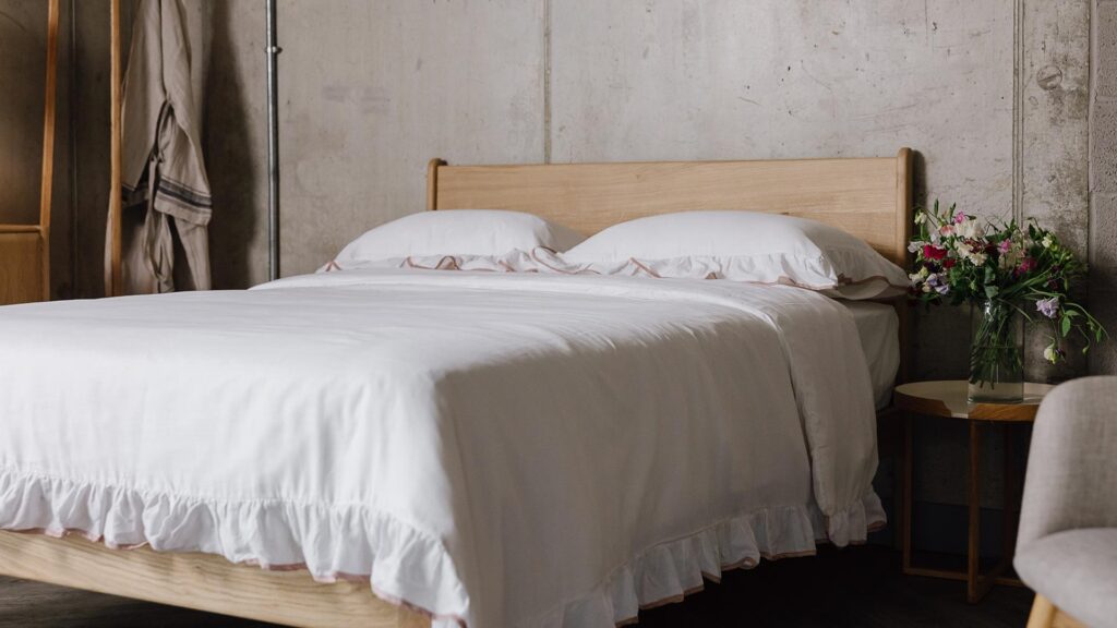 Calm and cooling – a white bedroom look is great for summer. Classic white bedding is also available in a wide range of fabrics and styles, so this look is really easy to achieve. Pair your white bedding with a light coloured timber for a fresh, nordic look. We love oak, ash and maple but white-wash pine is good value and a great choice if you prefer a more rustic look. White walls and white bedding will really draw attention to the timber.