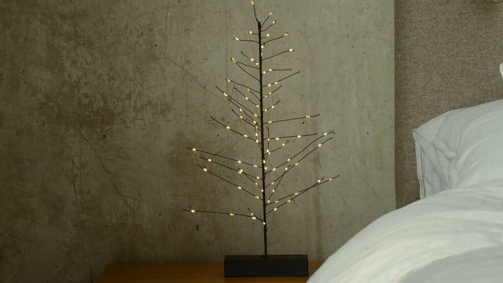 A splash of red is bound to add a cosy, festive feel to any bedroom scheme. The red cashmere throw shown here is the luxury way to do it! However our soft fleece blanket in red with a check pattern is another great choice and good value. It is soft to the touch and so cosy.We also have soft, brushed cotton bedding in various styles and colours including – red, grey and blush pink. The Crimson stripe set shown here is perfect for Christmas. Red works well with the charcoal, silver and white colours chosen for the bedding and accessories – these frosty shades balance the warmth of the red. This bedding range looks so inviting on our new Bloomsbury bed. The combination of a tall, padded headboard panel with elegant, tapered wooden legs is so stylish. Add a little Christmas tree and a faux fur throw or hotwater bottle to complete this wintery haven.