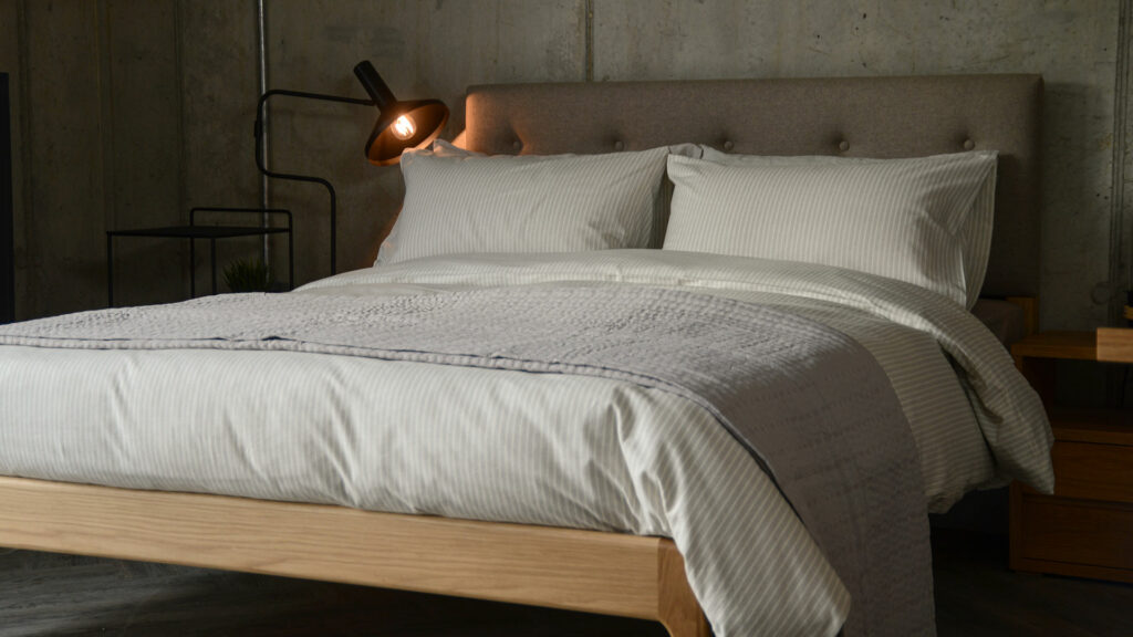 A classic look inspired by a ‘New England’ style: soft cotton bedding and throws with timeless patterns in stripes and checks. This look particularly suits slightly more traditional bedrooms, but can also be used in more modern bedrooms to give them a subtle ‘country cottage’ quality. I particularly love our new brushed cotton bedding with a grey plaid print. A classic plaid print will never date!Create a cosy feel to this look with the addition of a velvet quilt or sheepskin throw. Soft cushions, a faux fur covered hot-water bottle and a warm bedside light will result in a toasty, relaxing atmosphere – perfect for the season.