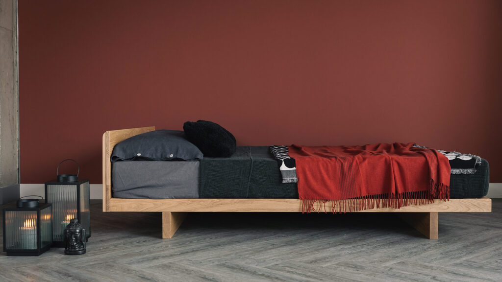 Love the wall colour? We do too. It’s a Coat paint called Yes Chef! A subtle, brick red – it manages to be both rich and restful. Perfect to complete this classic Japanese bedroom look.