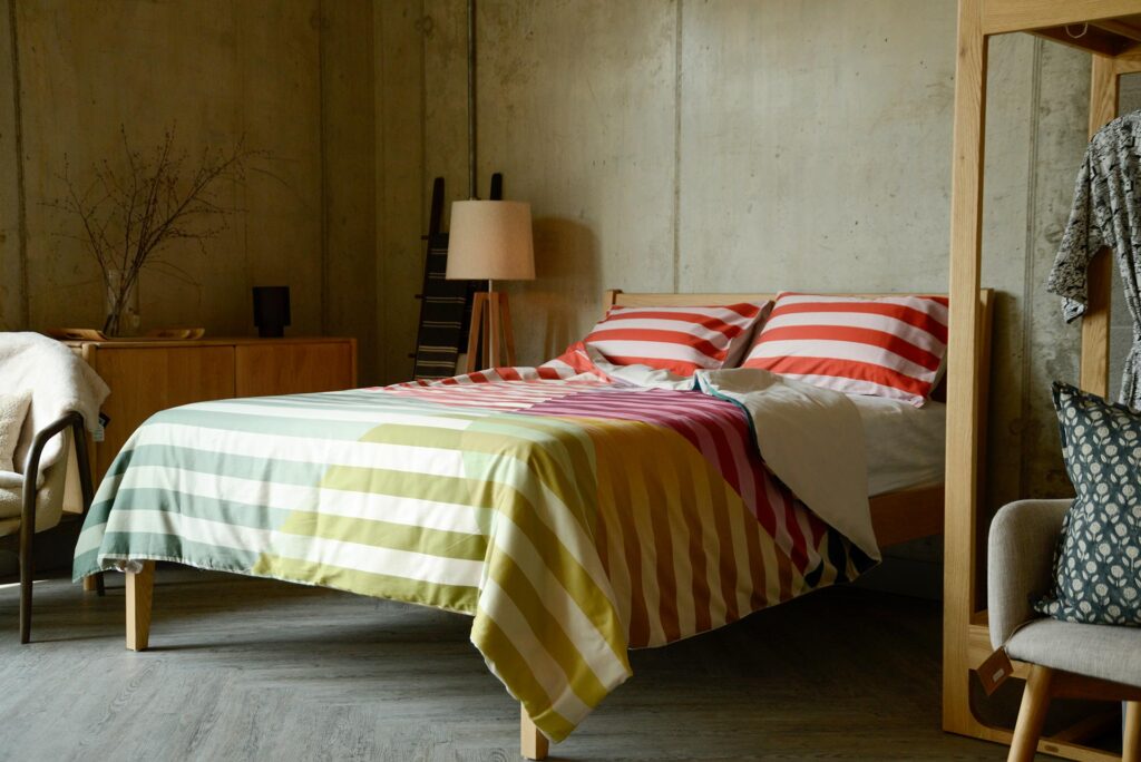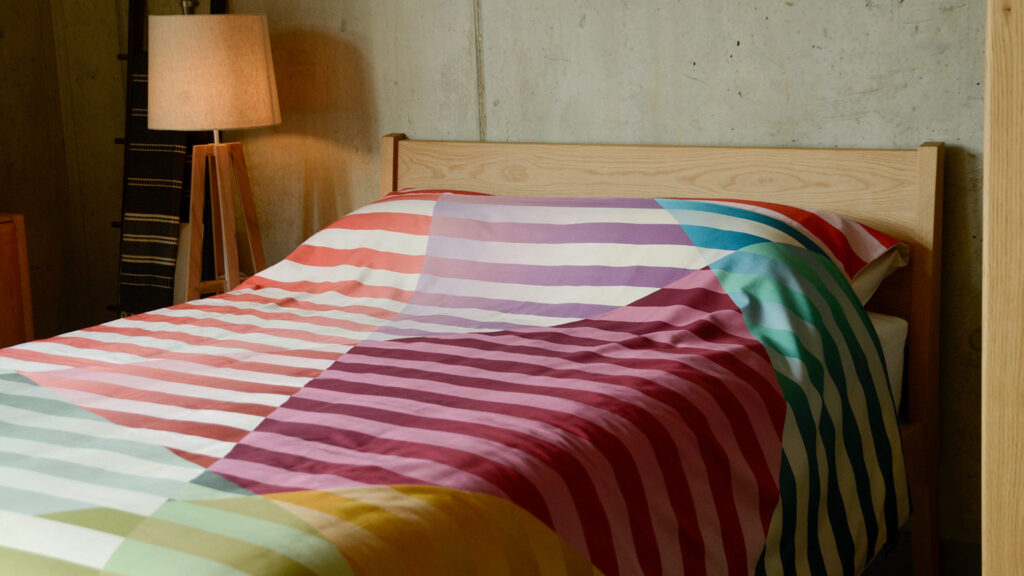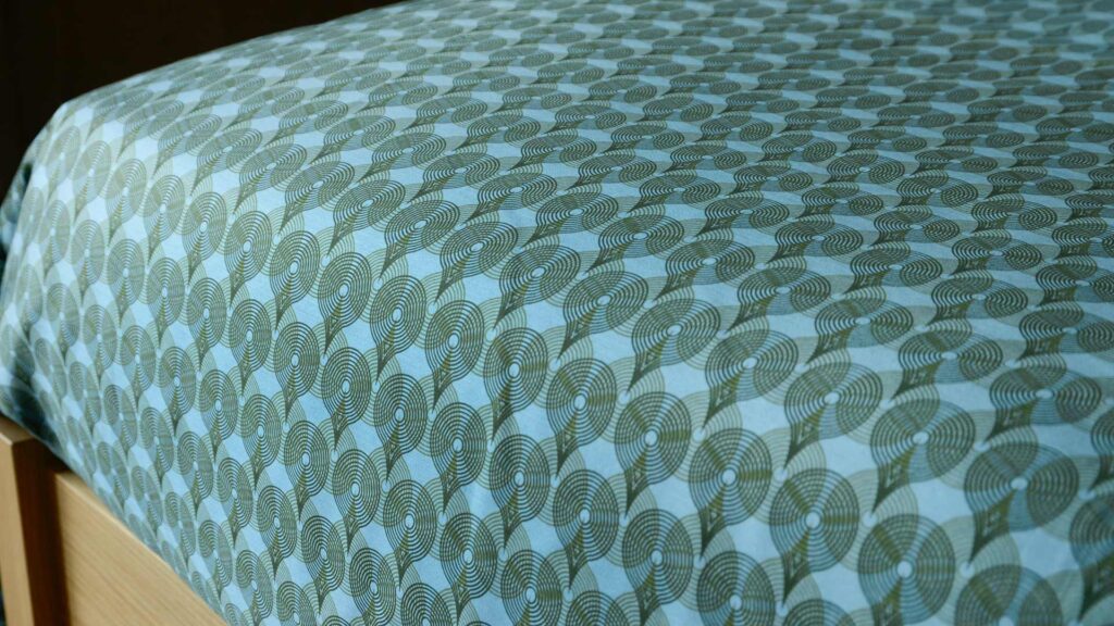 Made up of layered patterns of concentric circles, the new Circle Pattern Bedding is available in two bold colours. Choose from either orange or blue to suit your room’s colour scheme. Orange features wide stripes of varying shades of orange, from a deep, rusty orange, through to a very light, pale shade. Blue follows the same pattern, but with a rich, teal blue, a pale blue and a band of bright spring green.