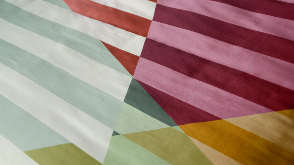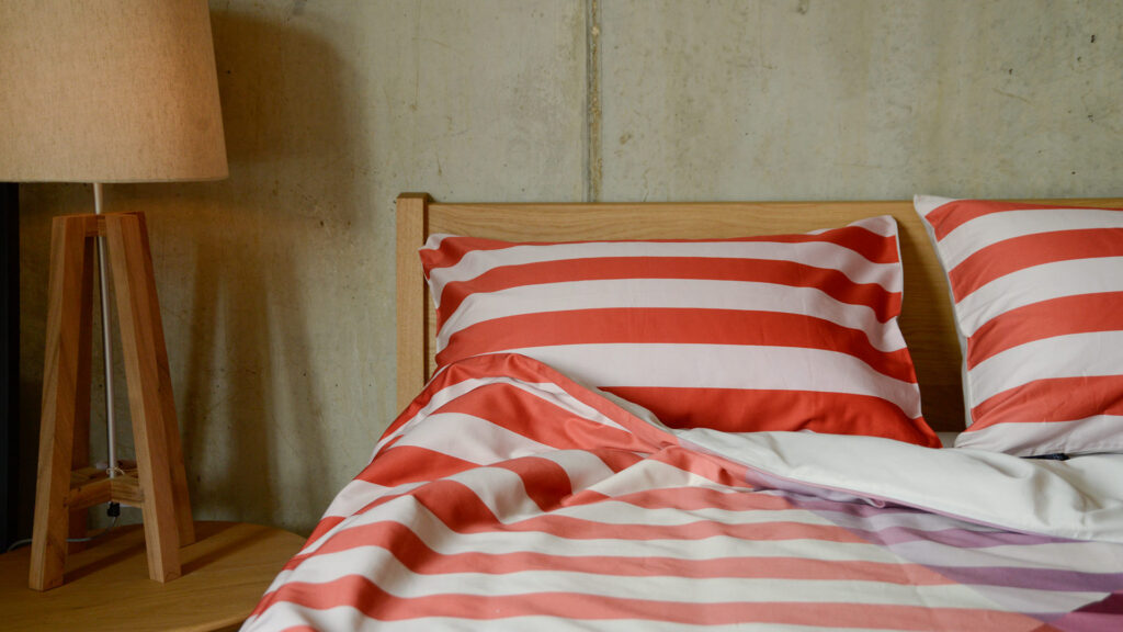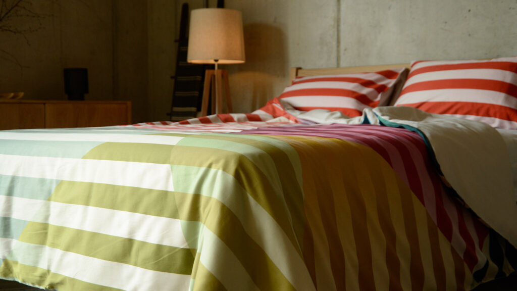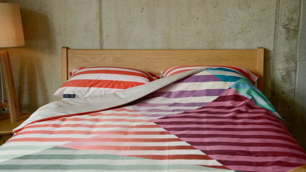 Bold and bright, this new Colourful Organic Cotton Satin Bedding is perfect for make a bold statement with your bed linen. With stripes of burgundy, pink, green and blue spanning across the duvet cover and pillowcases, this set is eye catching and stylish. We feel that this set also has a hint of nostalgia, and allows you to satisfy your inner child – initiating a fun and playful atmosphere. But, the uniform look retains a contemporary look that is just stylish enough for more grown up tendencies.