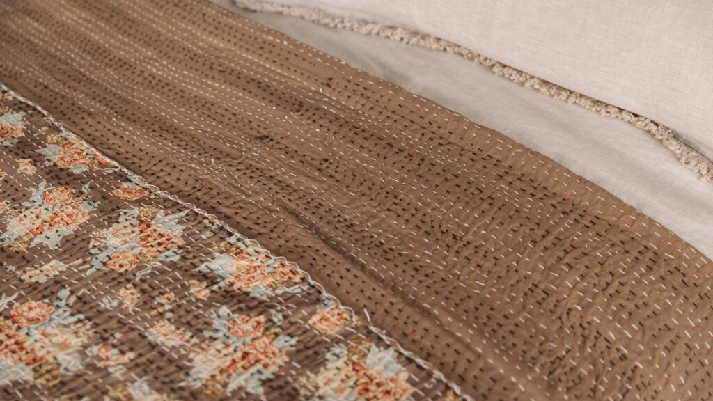 Beautiful and delicate, these new Floral Stitched Cotton Bedspreads feature a lovely pattern of flowers and leaves. Laid over the pattern are bold coloured threads, stitched into the fabric of the bedspreads to create a dash effect. Available in two colours, the Ivory option features an ivory white background, with the floral pattern printed in bright pinks and greens. Whereas, the Mocha option features a warm, mocha brown background and has the floral pattern on show in more muted pinks and pale beige shades.