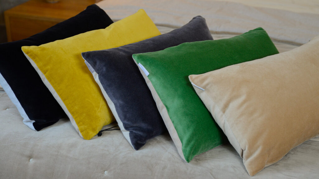Another great way to introduce colour is with the classic Cotton Velvet Cushions. These are super easy to place wherever you’d like them, on benches, chairs, sofas or on the bed. The perfect throw cushion size, they’re available in six colours.