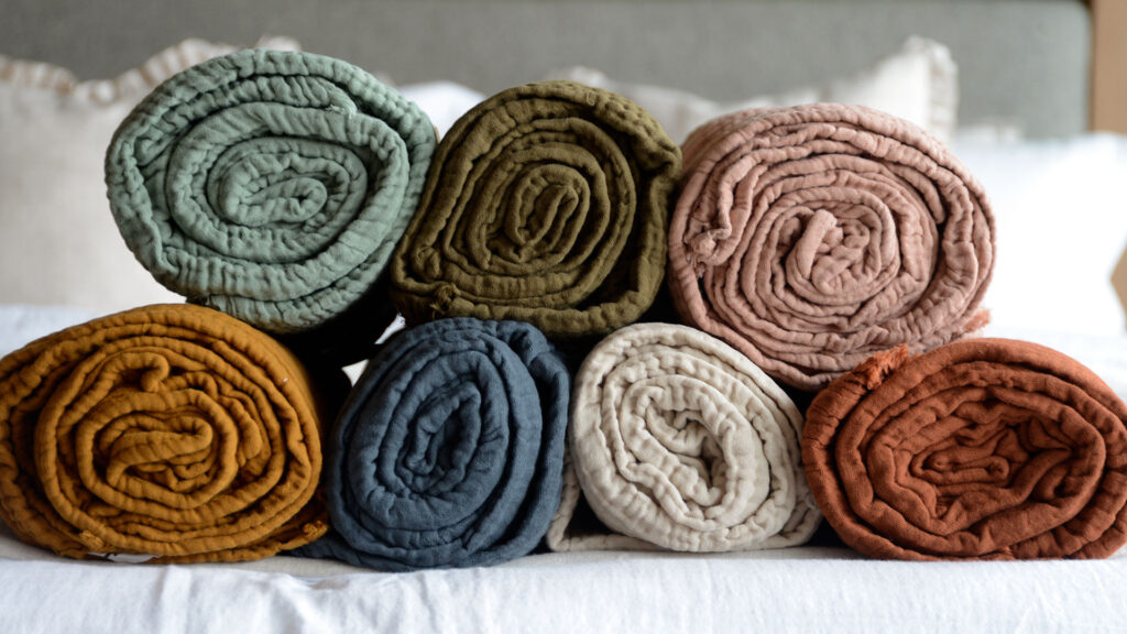 Muslin is our new favourite thing! Since our customers loved the Organic Cotton Muslin Bedding so much, we’ve introduced more options into our range based on this material. Super soft and cosy, muslin is lightweight yet has a brushed, snuggly texture. This new range of muslin is available in both throws and bedspreads. Only a selection of colours are available in the larger bedspread size, but the throws have all the colour options available.