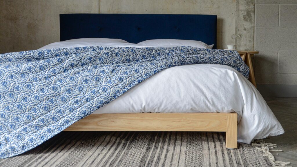Essentially, any of our upholstered bed bases can be made with the Eco Velvet! At the time that this blog is written, we currently have the Bloomsbury photographed in the shade Plantation and the Iona photographed in the shade Indigo. But, you can also choose this fabric option for the Arran, Shetland, Highland and Skye.
