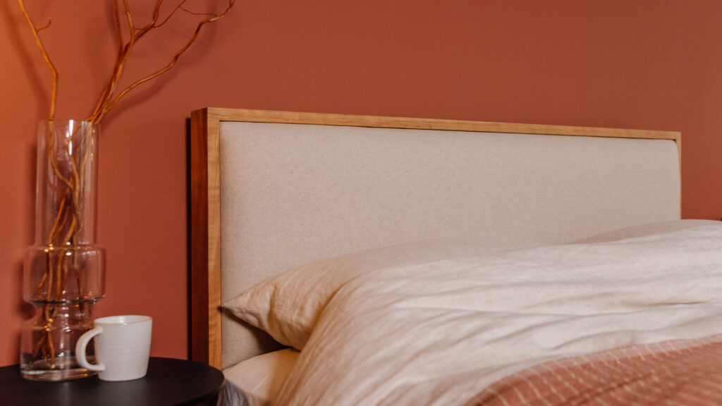 As always, this mid-century upholstered bed base is hand made to order by our skilled woodworkers in our Sheffield workshop – simply choose your size, timber and fabric. The Carlisle is available in any of our hardwood timbers, the headboard panel can be upholstered in our classic range of fabrics, or luxury pure wool fabrics. If you’re struggling to pick, get in touch and we’d be happy to send out free samples and swatches.