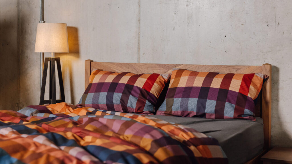 We’re so excited for this new bedding set! From a new supplier we’ve started working with this year, it’s made from organic cotton satin. Printed with varying autumnal colours, from deep oranges to rich dark blues and reddish-browns. Cosy, comfy and with a classic check pattern. It’s also finished with a subtle woven print to add texture and detail to the colours. 100% organic cotton satin.