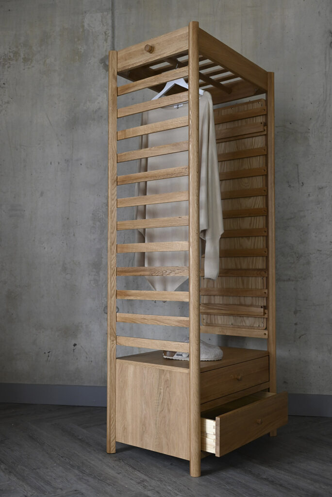 The Oslo open wardrobe is available with or without a hanging mirror. The unit has an upper hanging rail and two lower drawers. This unit is perfect for a guest bedroom or a large hallway.