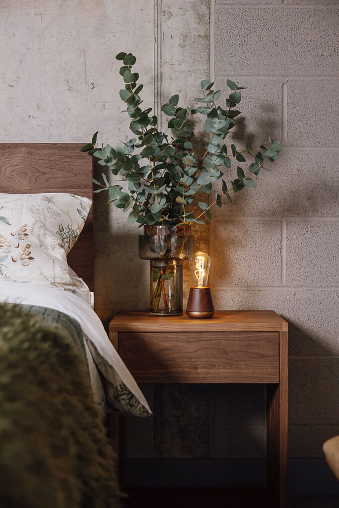 While natural and smoked walnut are stunning, some might prefer the walnut look without the expense of genuine walnut timber. In these cases, stained timber options can be a practical alternative. Wenge Stained pine is a very popular option for those looking to create a statement aesthetic without the heavy price tag. It’s especially popular on minimal bed designs such as the Kyoto or Kumo.